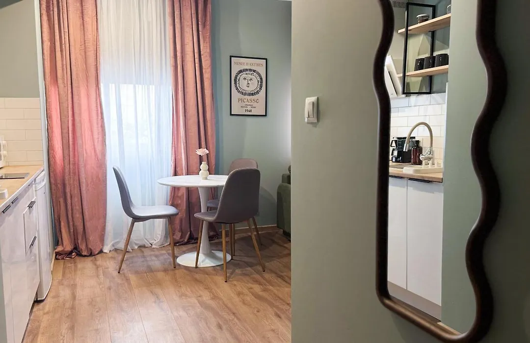 The 39 m² apartment lies in the Reno district, around a 15-minute ride from the Mokotow Field. The socialist realist Palace of Culture and Science is located approximately 6 km away and Warsaw Frederic Chopin airport is located 5 km from the apartment.